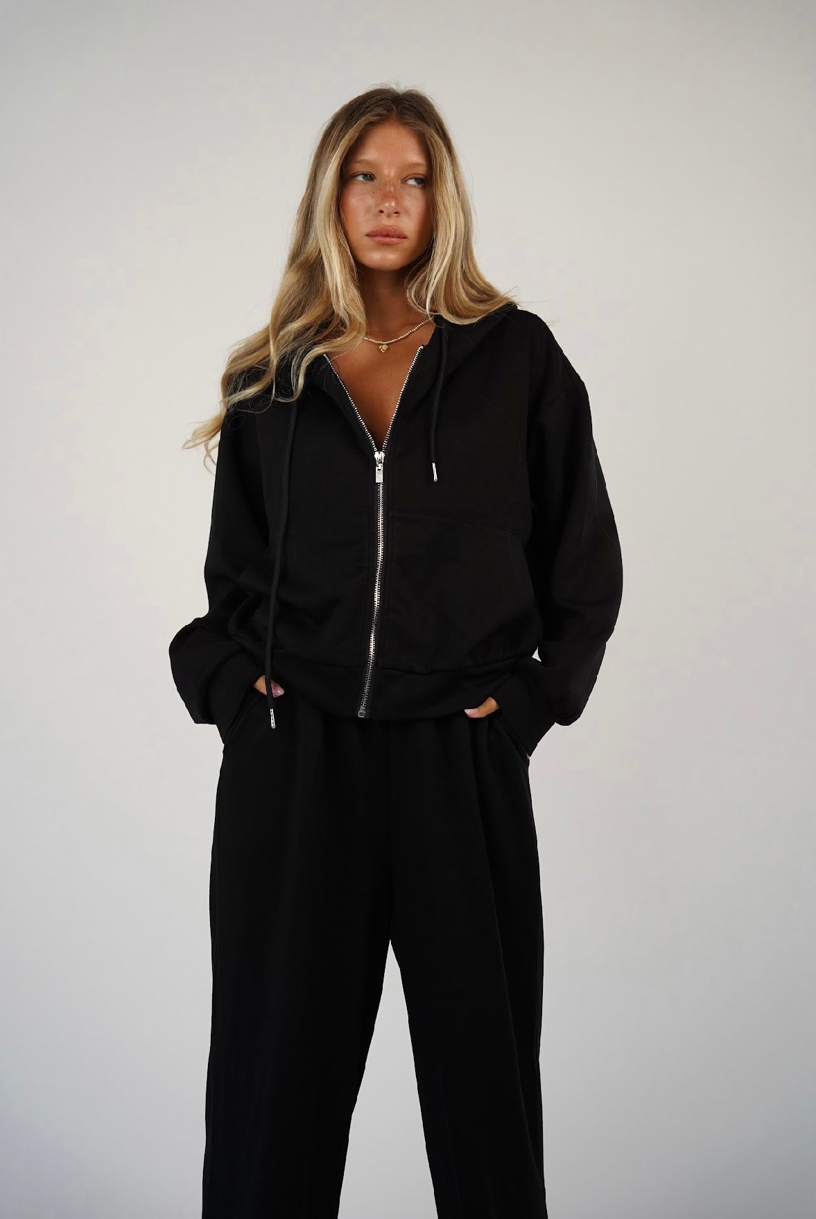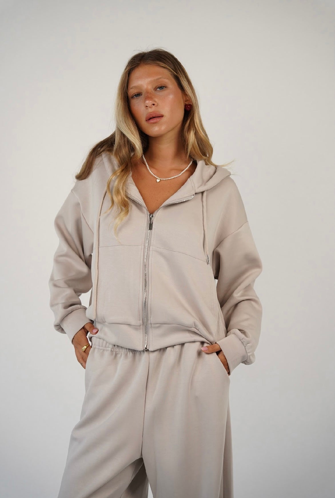 •מכנס ארוך + ג׳קט עם רוכסן וכובע
