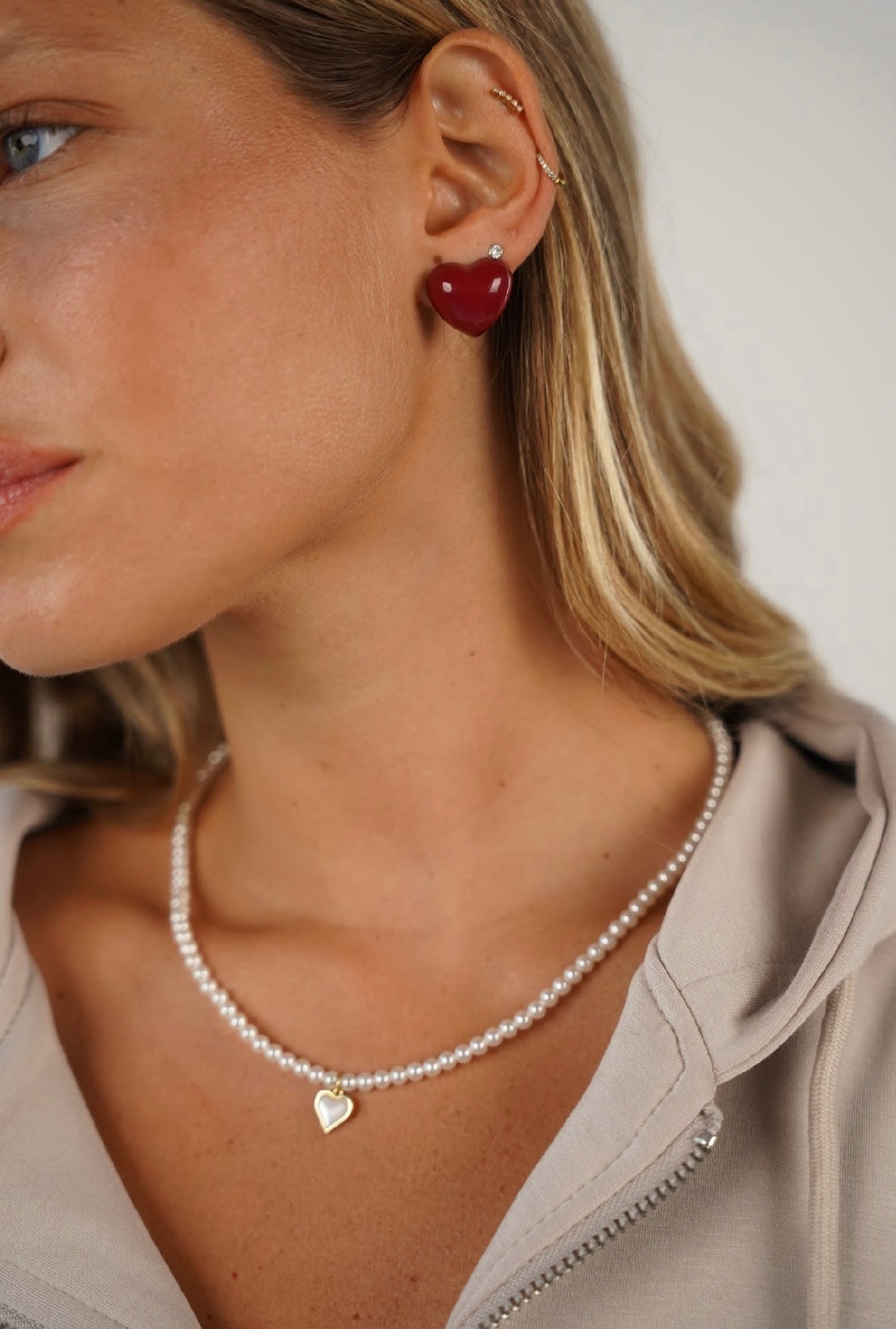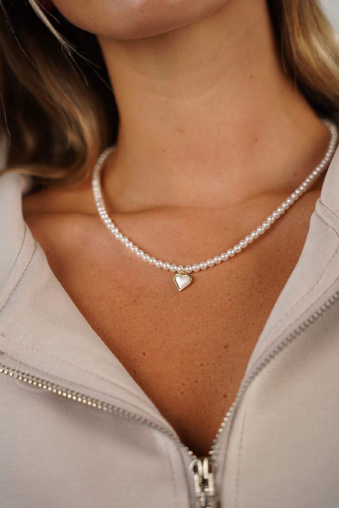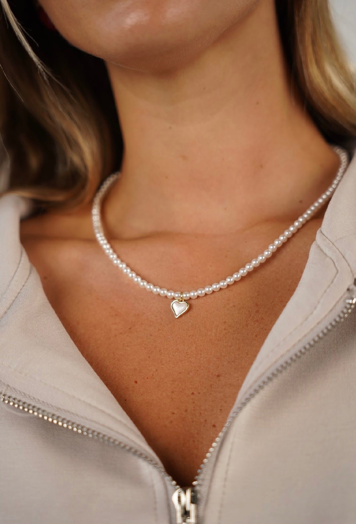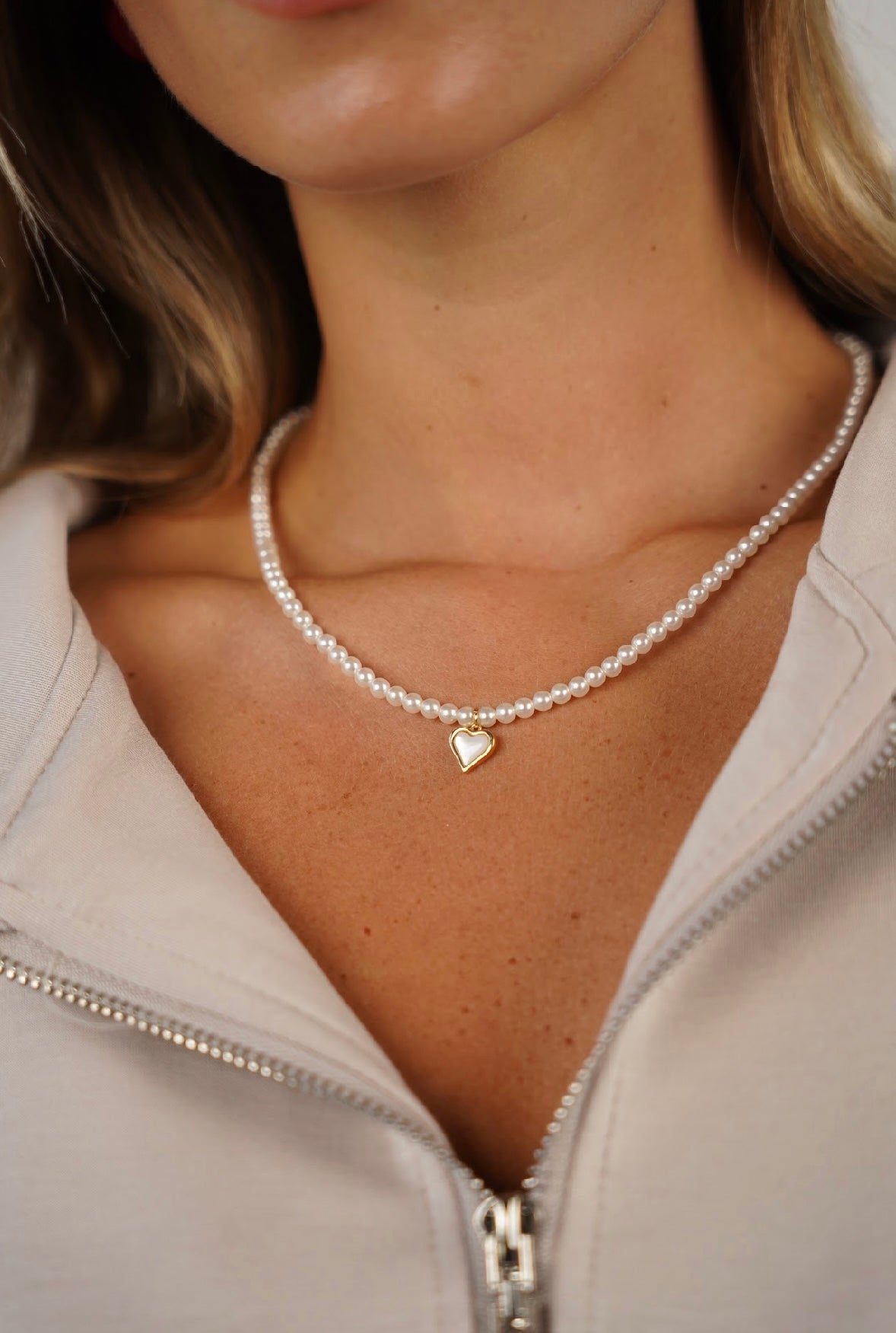 שרשרת פנינים עם לב אמור